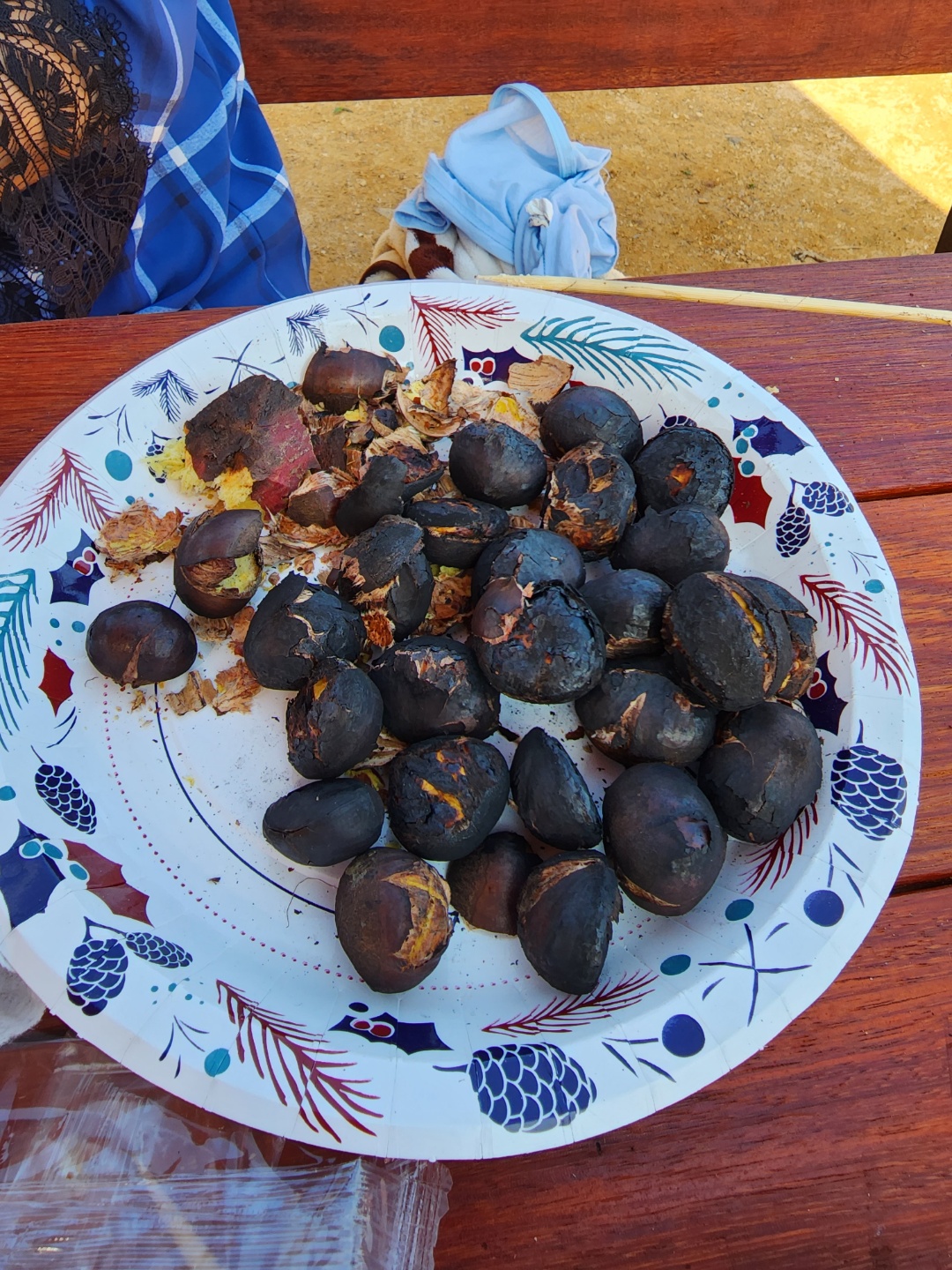 보기엔 새까매서 다 탄 것 같이 보이지만 잘 익은 밤입니다. 밤이 제철이라 그런지 아주 맛있습니다.